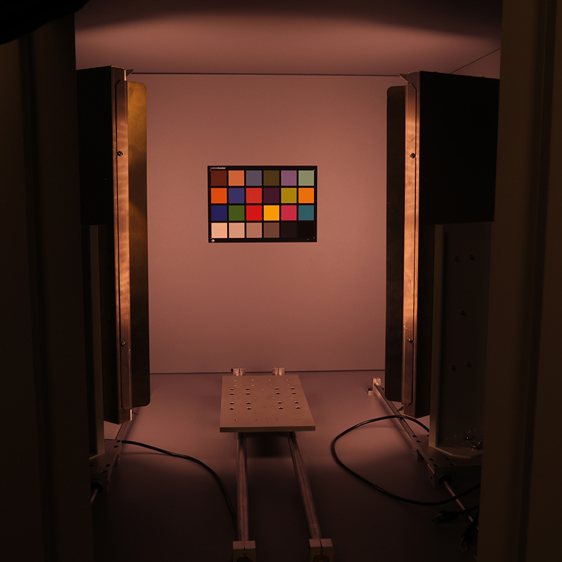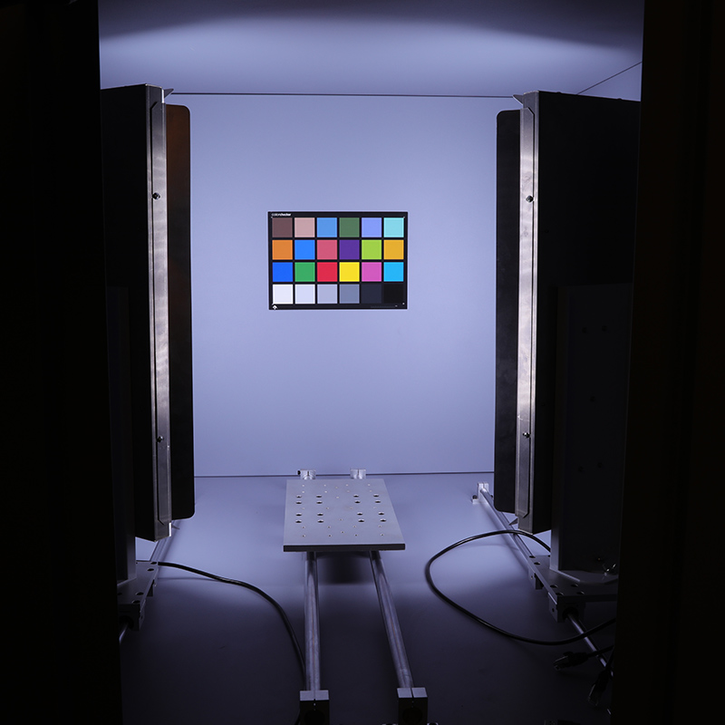 VC-118-X摄像头测试灯箱是深圳三恩时科技有限公司新研制的色温照度可调节摄像头测试专用灯箱。本产品可以在使用同一张图卡的情况下测试不同视场角的摄像头。内置移动滑台,可轻松前后移动摄像头。灯箱内配置高显指、无频闪、长寿命、色温稳定的LED光源,用户可根据不同情况前后移动和左右旋转光源灯板,得到更加均匀的光照环境。