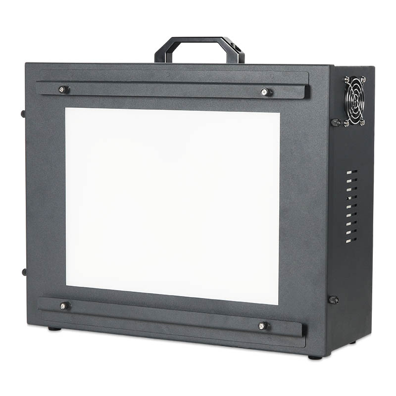 T259000+高照度/可调色温透射灯箱主要由:箱体、把手、测试卡槽、透射面板、光源开关、测试卡固定螺钉、电源插座、电源开关、光源控制盒等部件组成。